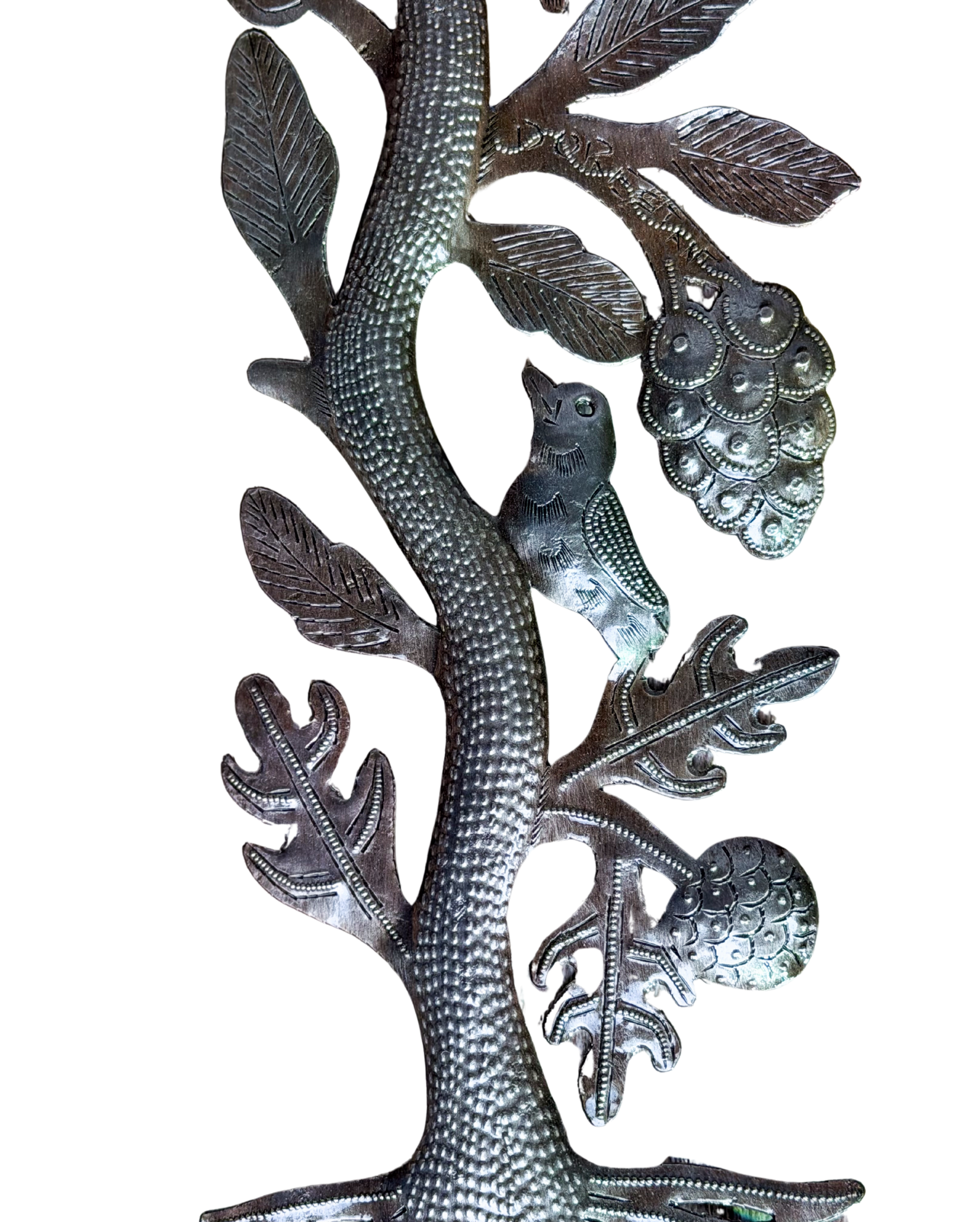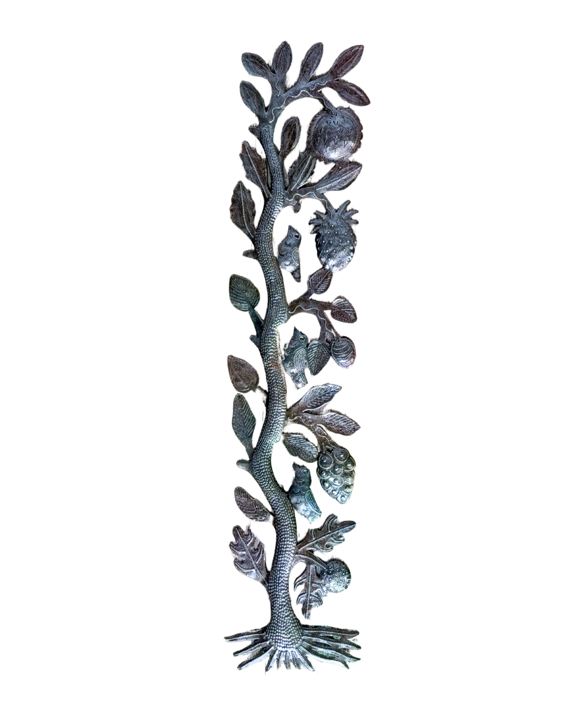 Joseph Serge Jolimeau is regarded as a pioneer of Haitian metalwork. Serge’s distinctive style features flowing curves and dynamic textures, highlighted by gold and copper paint. He actively promotes and mentors emerging artists in his Noailles village gallery, ensuring this exceptional Haitian craft endures.