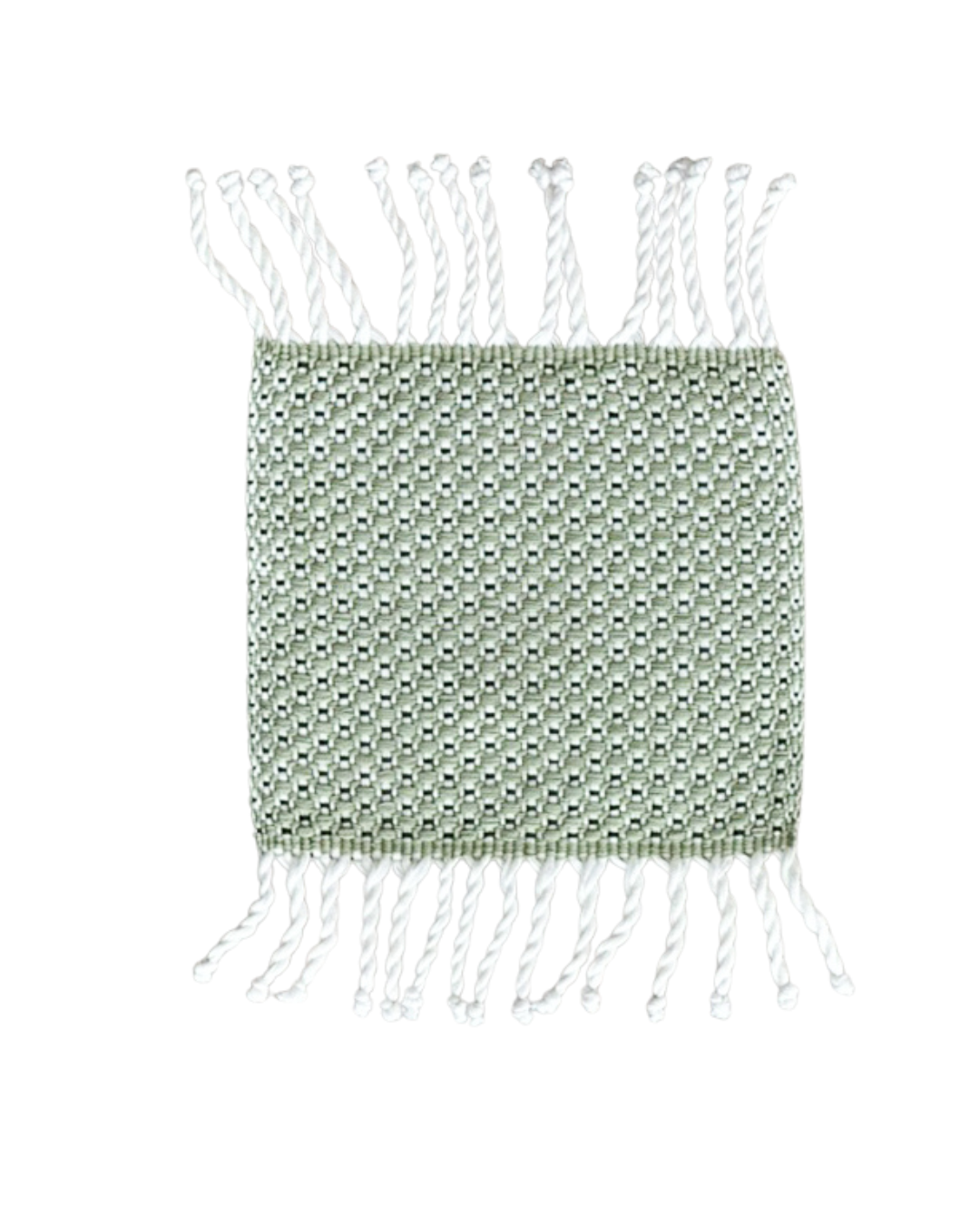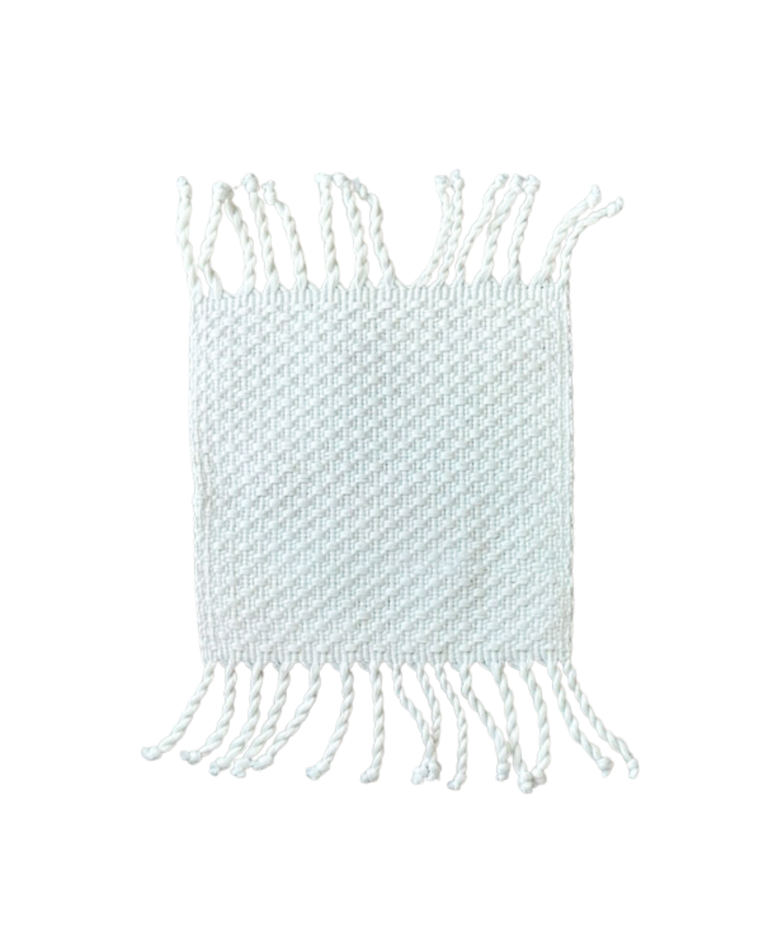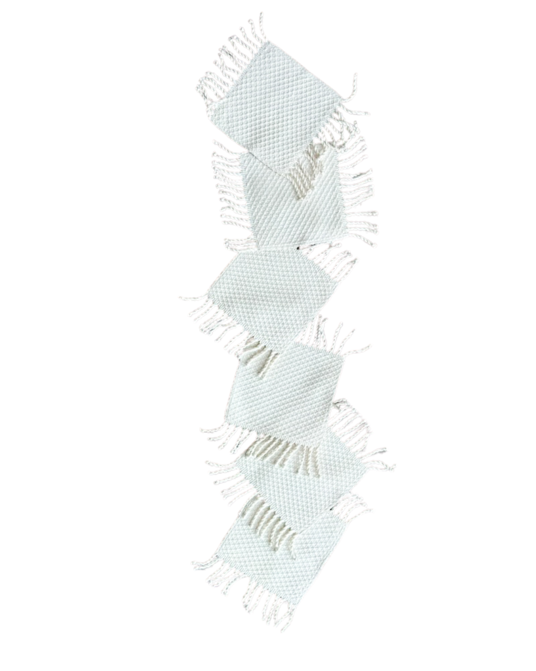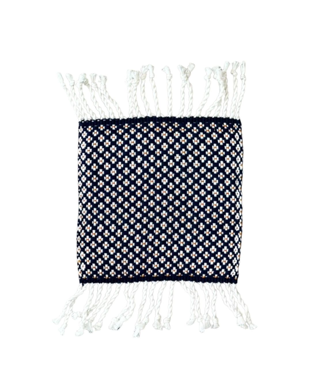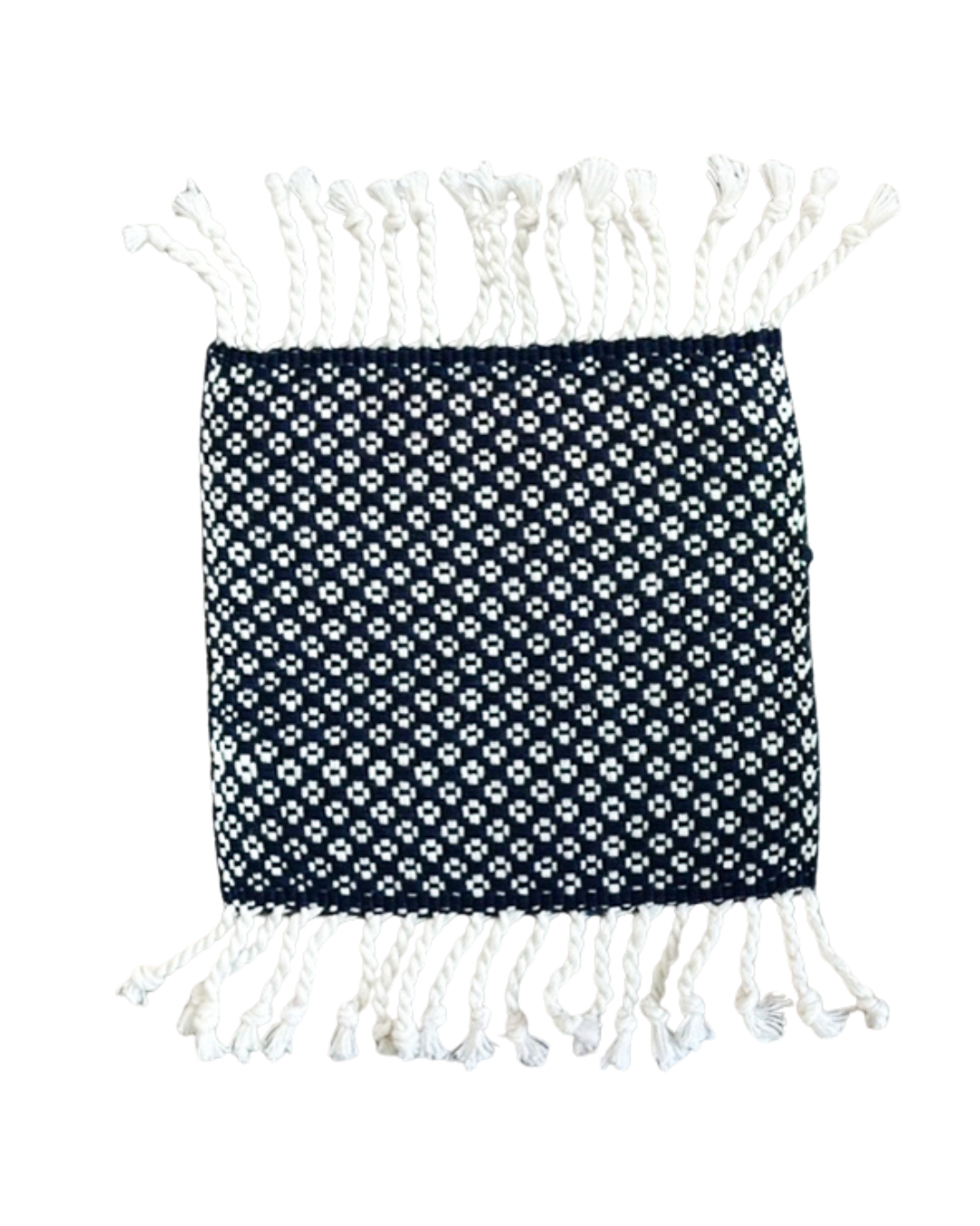 This set of coasters is hand loomed on a backstrap loom in Guatemala, featuring an intricate brocade diamond weave pattern that showcases exceptional craftsmanship. Each 4x4" piece is finished with hand-twisted fringe, adding a refined touch to your table setting. Ideal for protecting surfaces while enhancing your décor with artisanal detail and durable, natural fibers.