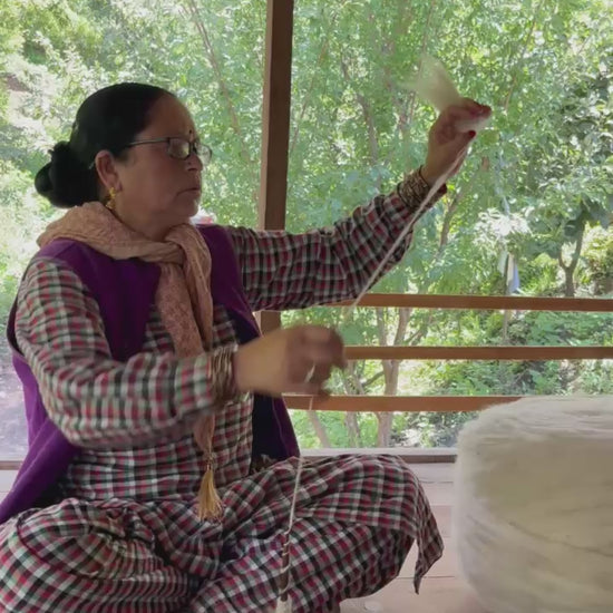 Sourced from Himalayan sheep, the Houndstooth Throw is crafted with wool that is carefully sheared, spun, and dyed using natural regional dyes. Hand-loomed through traditional techniques, each throw is woven on a manual loom, allowing skilled artisans to control tension and pattern precision. This process ensures a durable, high-quality textile with a distinctive houndstooth pattern, combining heritage craftsmanship with lasting comfort.