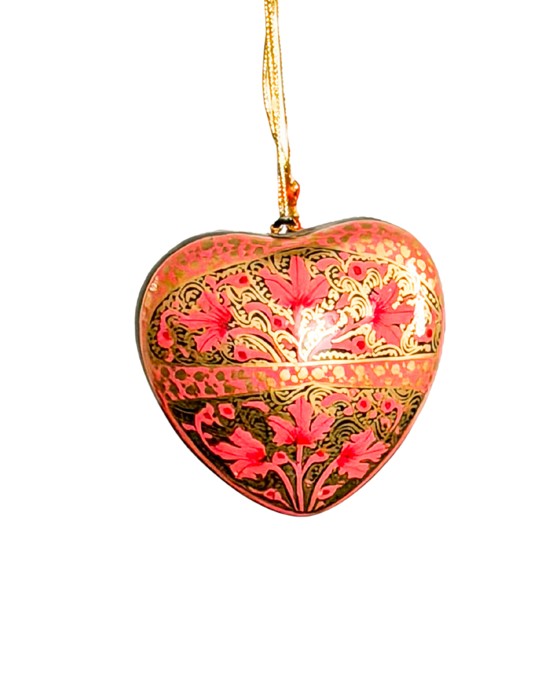 This hand-painted paper mache ornament originates from Kashmir, India, designed for decorating Christmas trees. The craft, introduced by Persian travelers in the 14th century, carries a rich regional heritage. Purchasing this piece helps sustain artisans and their families in Kashmir's remote mountain communities, where economic opportunities are scarce.