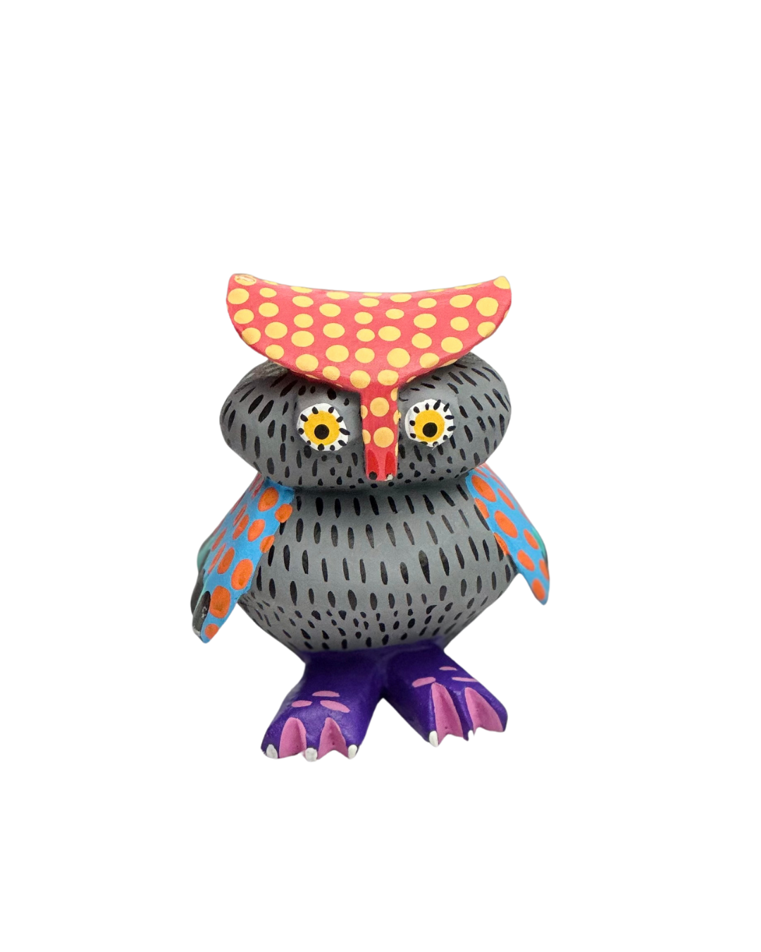 This owl captures the essence of the alebrije tradition through its dynamic colors and intricate designs, reflecting both cultural heritage and masterful craftsmanship.